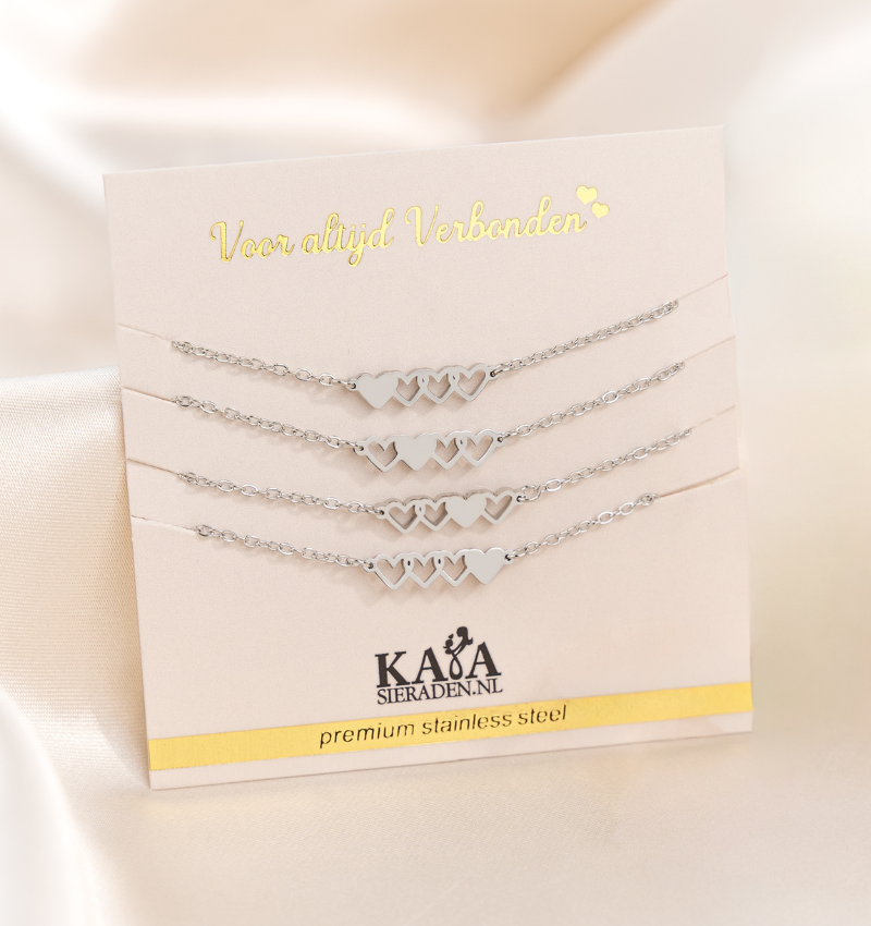 Girlfriends bracelets set four hearts | Stainless Steel - Goud