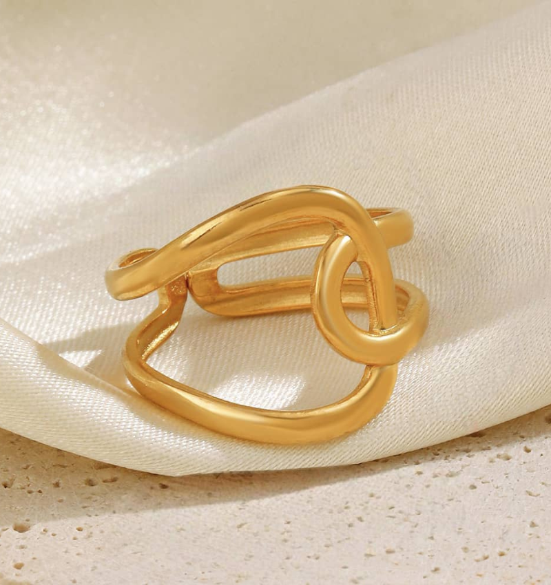 Adjustable Statement Ring with Loop | Stainless Steel - Gold