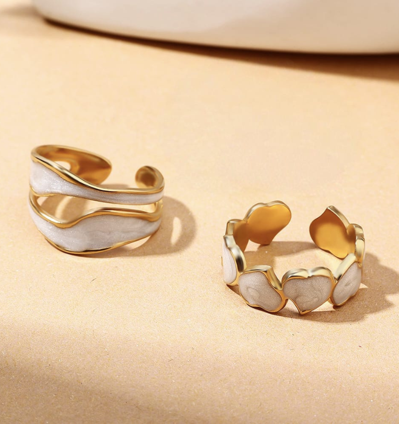 Adjustable Ring Waves with Mother of Pearl | Stainless Steel - Gold