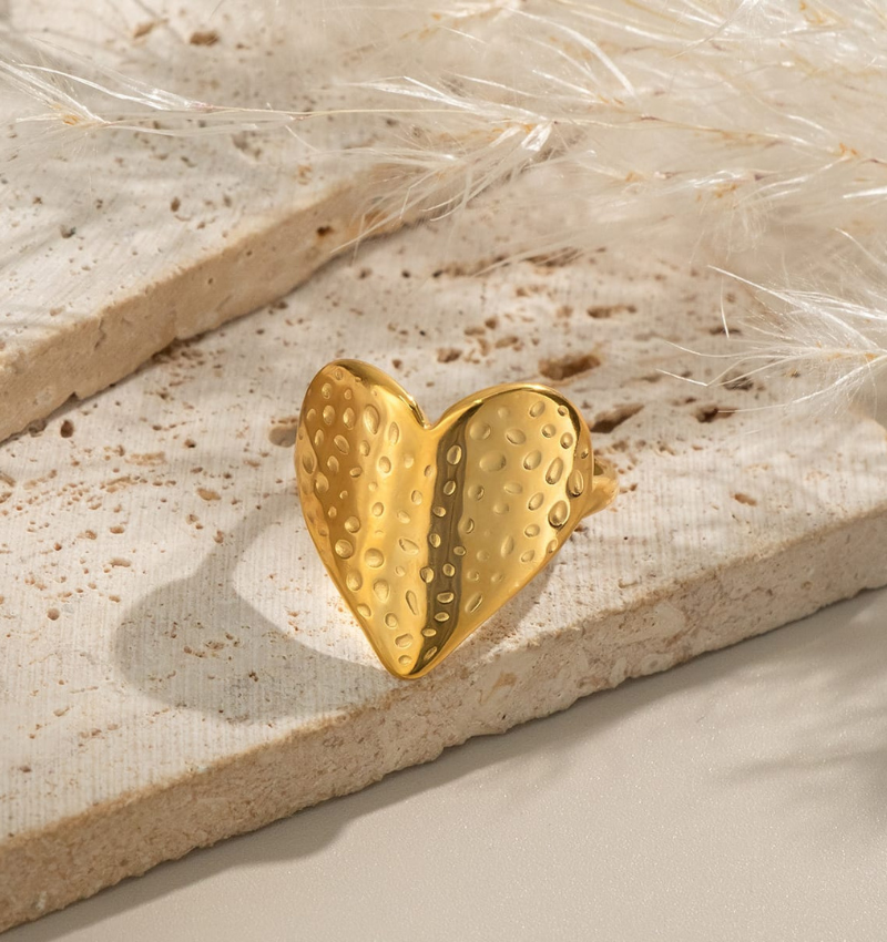 Adjustable Statement Ring Vintage Heart | Stainless Steel - Gold