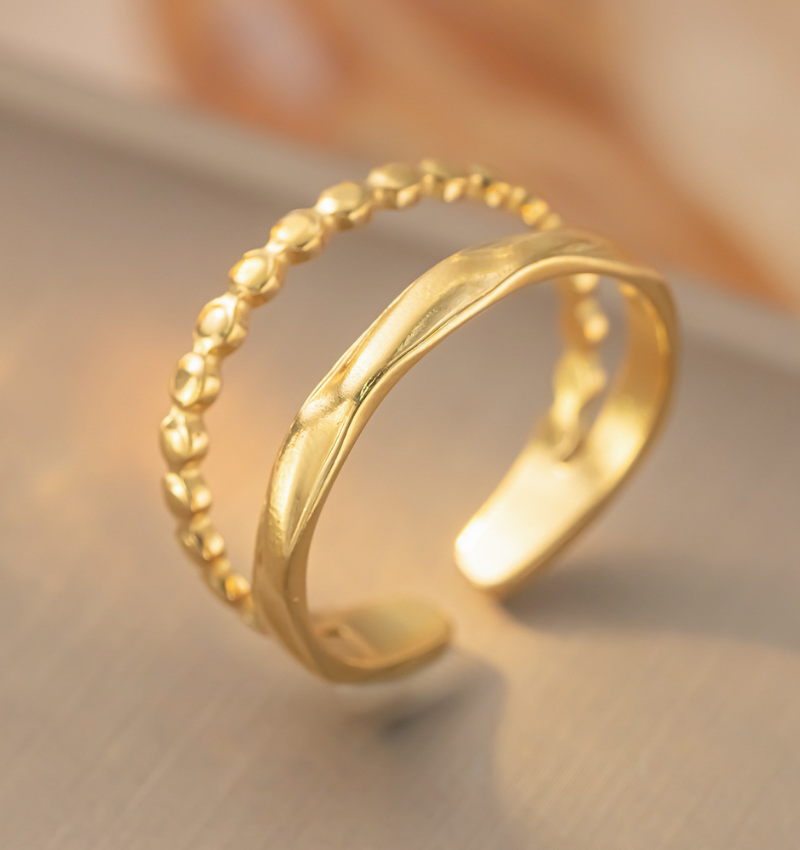 Adjustable Double Ring Vintage Dots | Stainless Steel - Gold