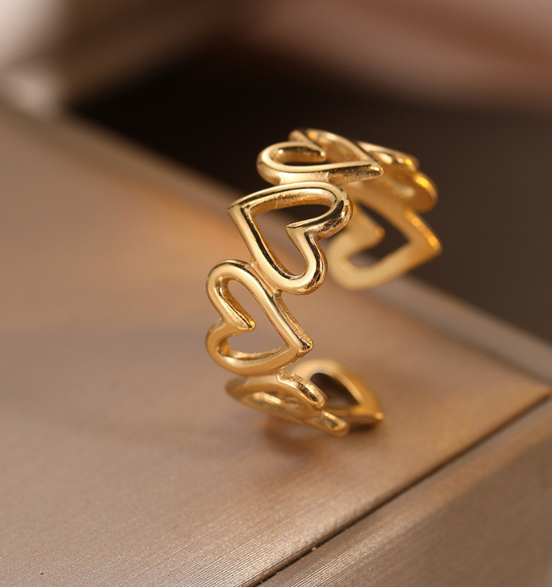 Adjustable Ring with Open Hearts | Stainless Steel - Gold