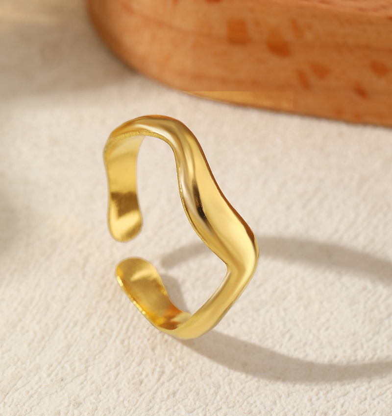 Minimalist Adjustable Ring Waves | Stainless Steel - Gold