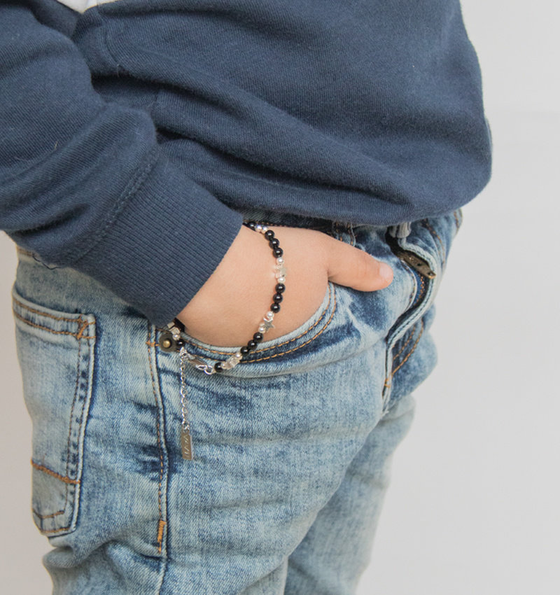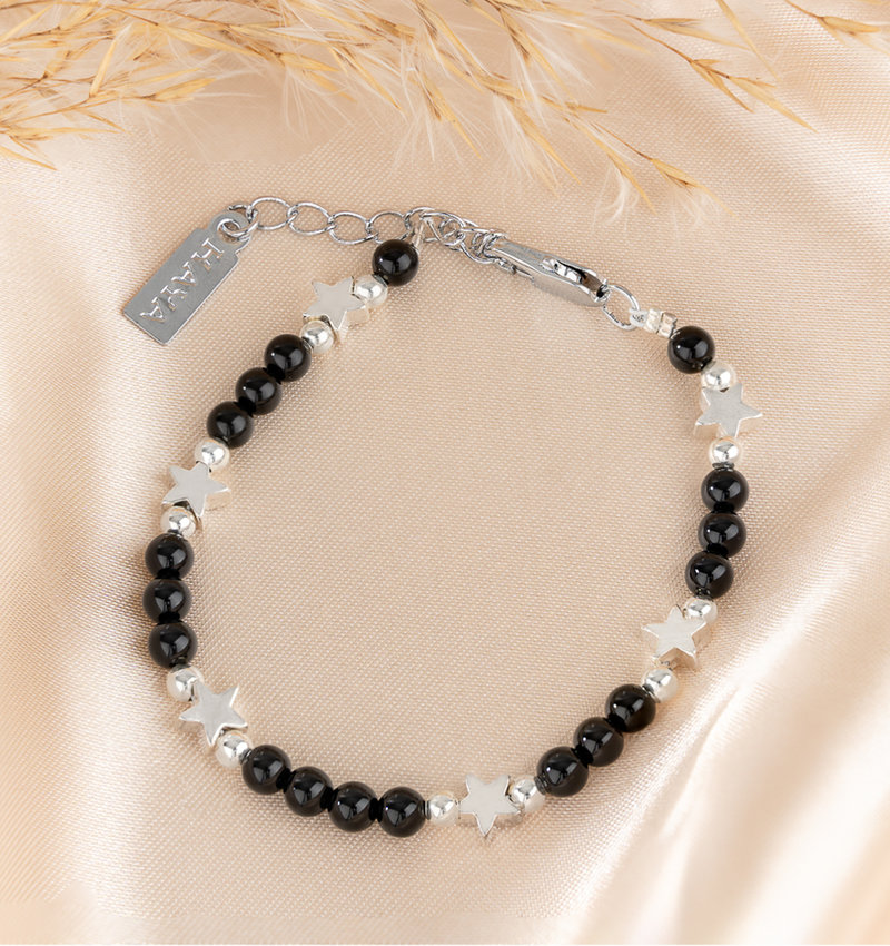This bracelet is beautiful in its simplicity. The jet-black onyx beads really pop with the silver stars!