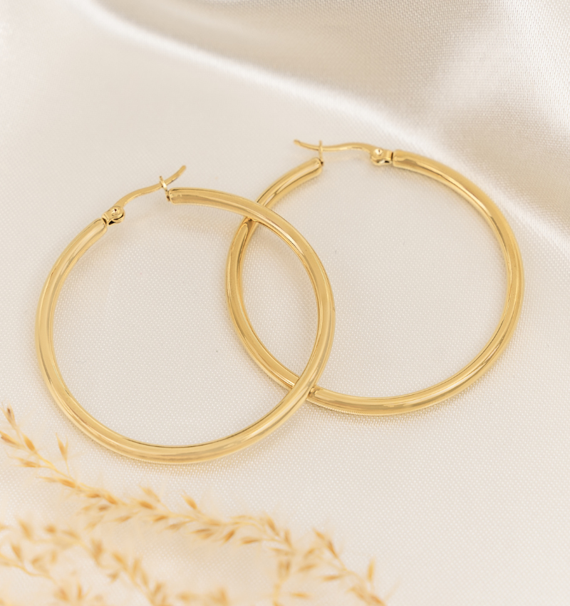 Basic Bold Hoop Earrings 5cm | Stainless steel - Gold