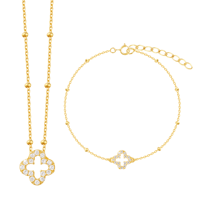 Clover Ball Jewelry Set with Zirconia - Gilded