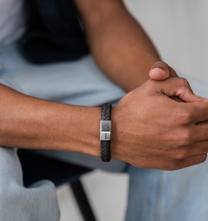 Have the fingerprint and name of a loved one engraved on the clasp of this timeless leather men's bracelet for an extra meaningful gift!
