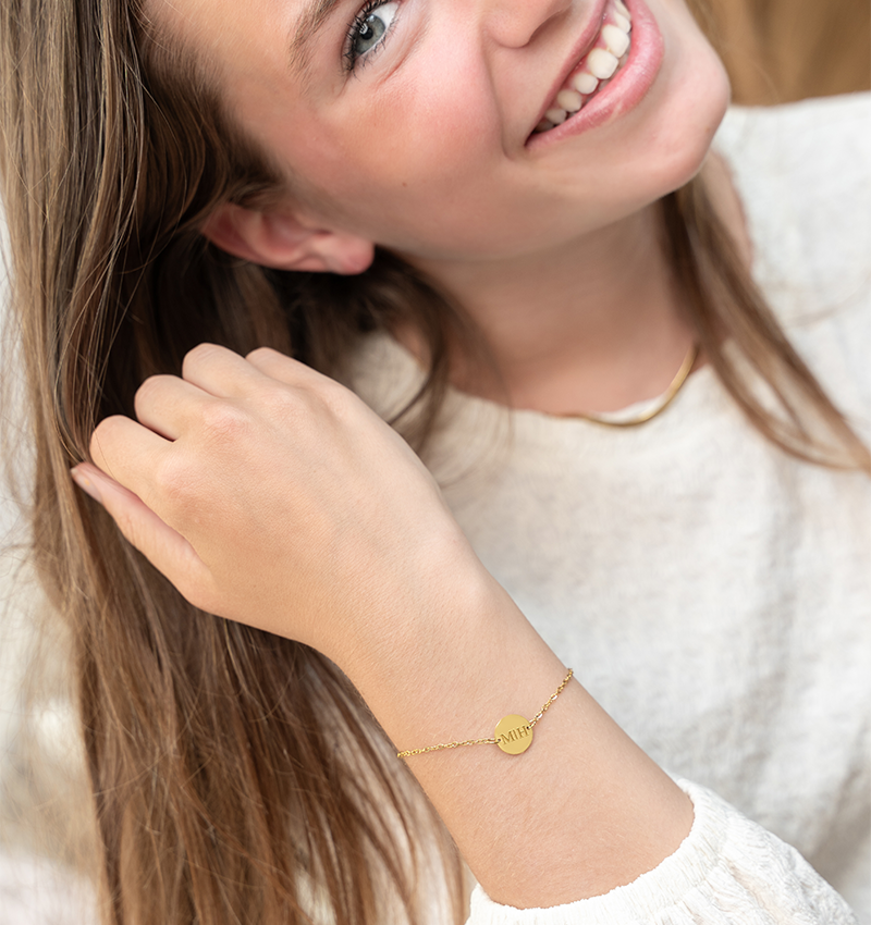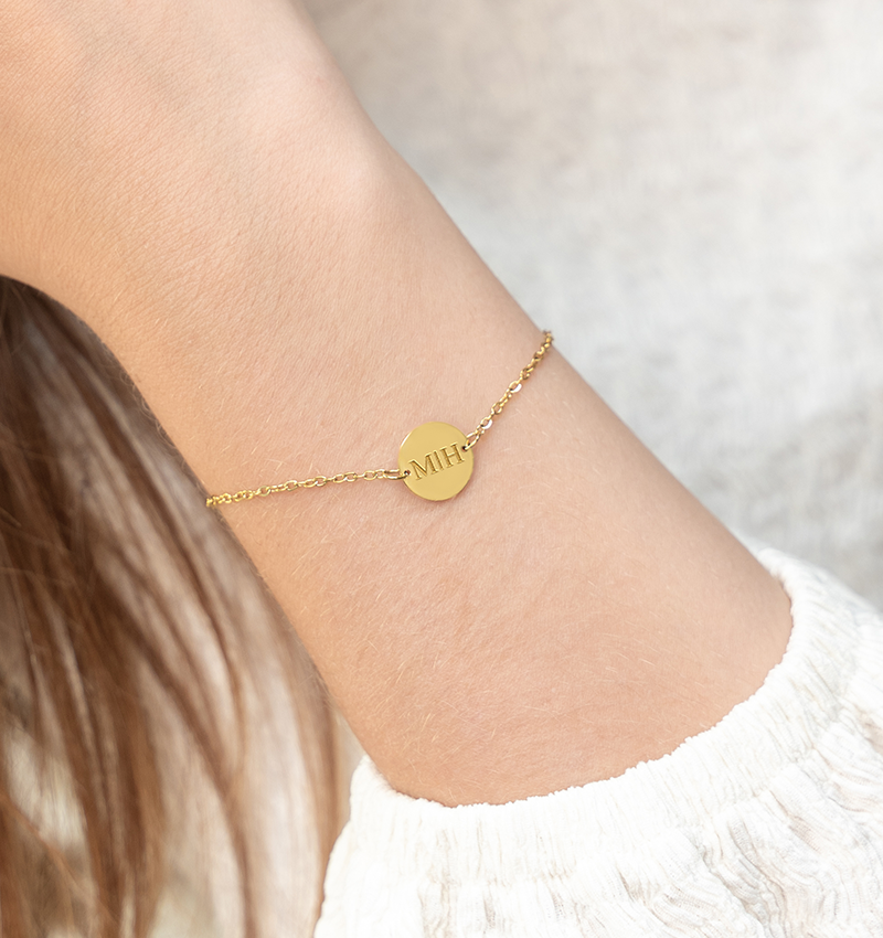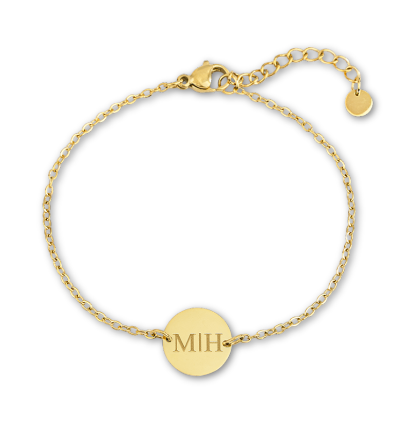 Bracelet Disc with Initials I Stainless Steel - Gold