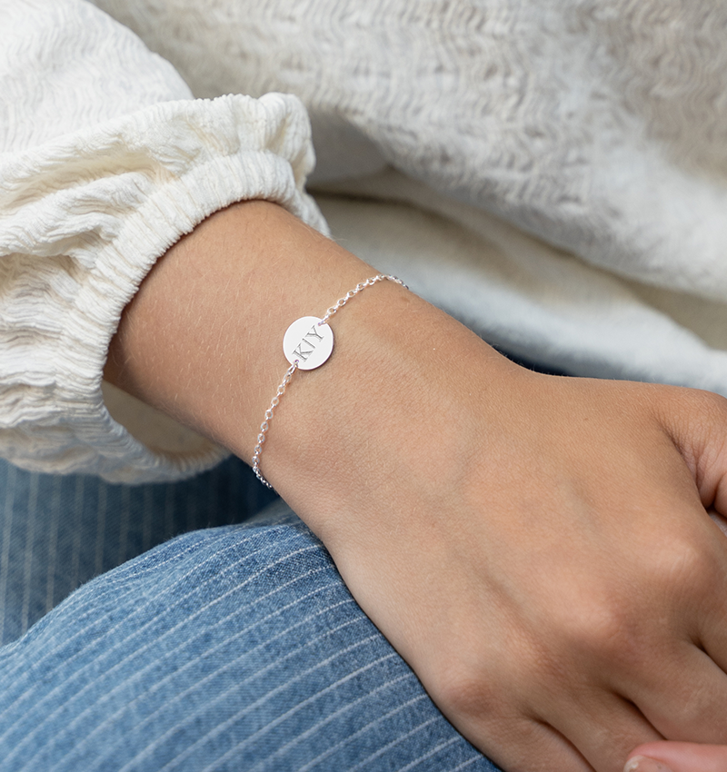 Keep your loved ones close with this bracelet featuring personalized initials.