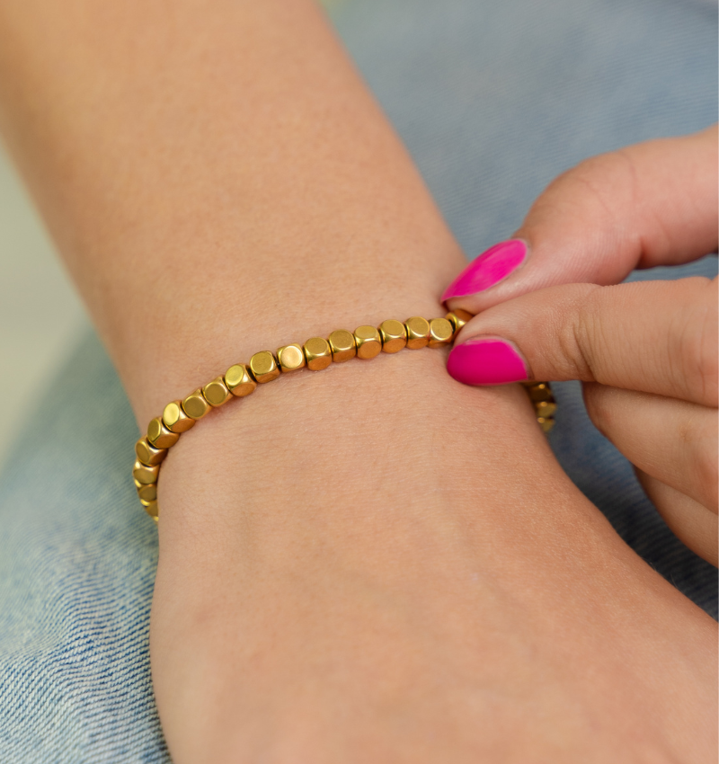 Bracelet Ladies 'Golden Blocks' Medium | Stainless Steel - Gold