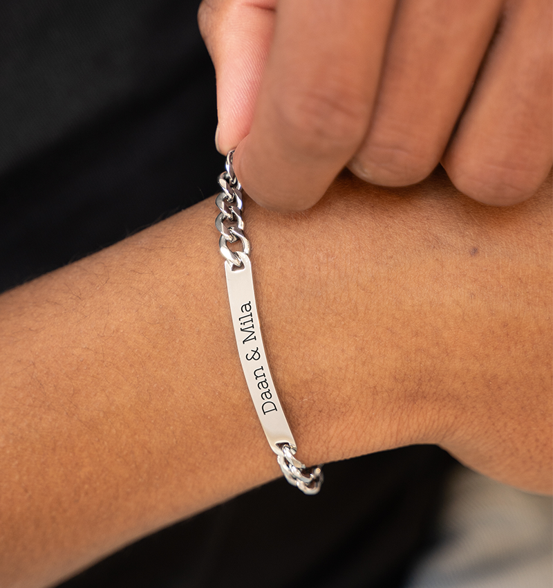 Bracelet Men with Engraving 'Classic Bar' | Stainless steel - Stainless steel