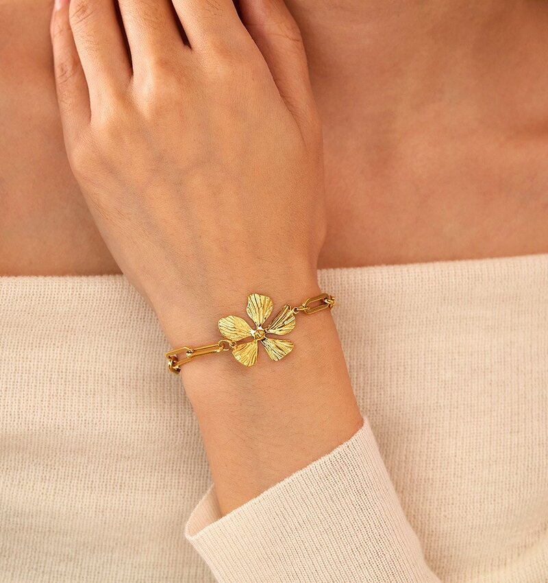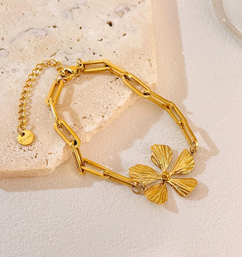 Chain bracelet with flower | Stainless Steel Gold - Zilver