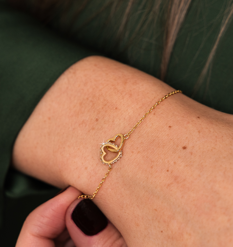 The 'Connected Heart' bracelet with crystals shines as a symbol of love and connection.