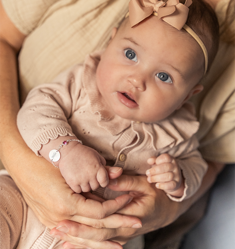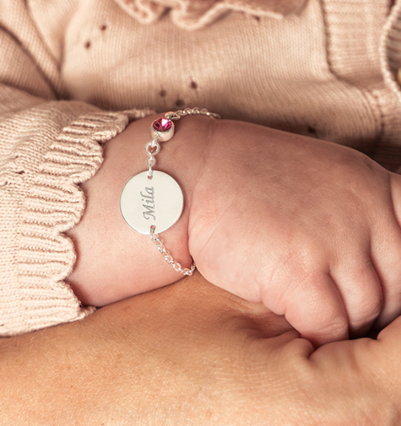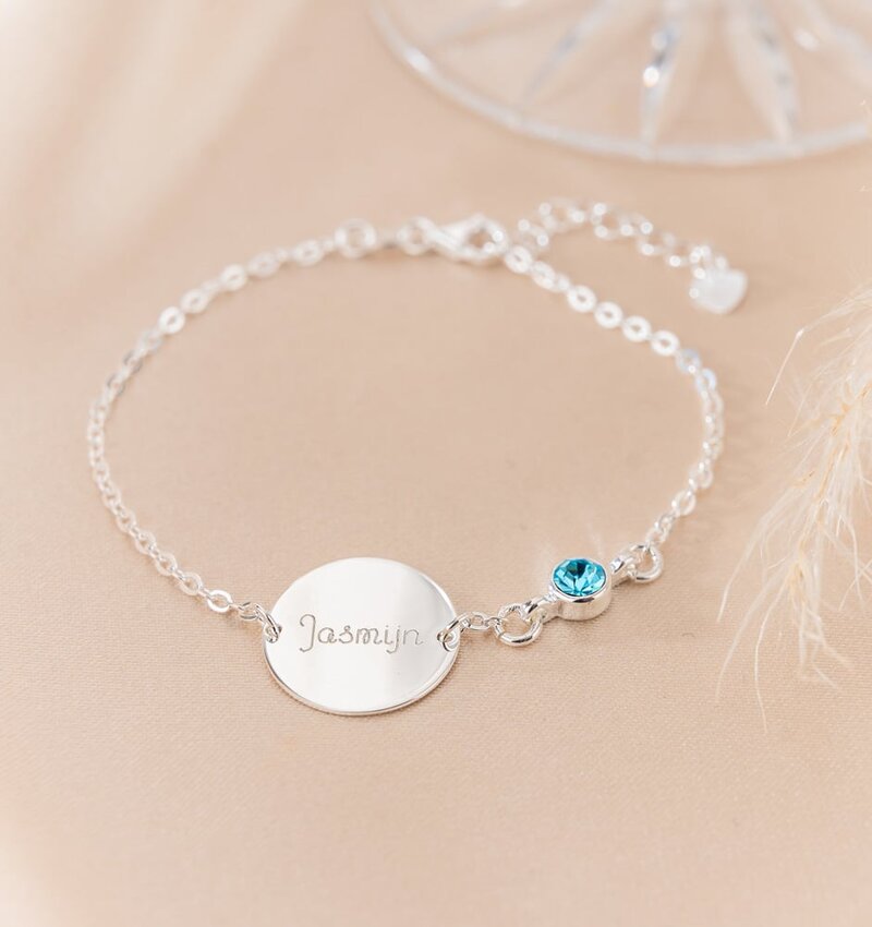 Baby bracelet with Birthstone and Name - Zilver