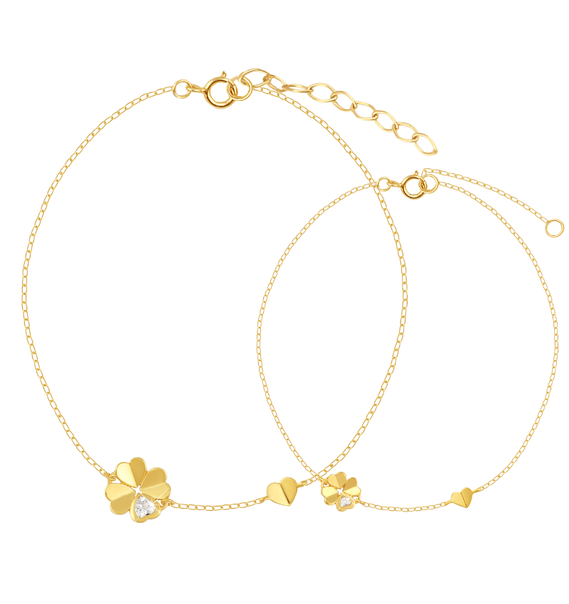 Mother & Daughter Bracelet Set Clover & Heart with Crystal - 925 Sterling Silver