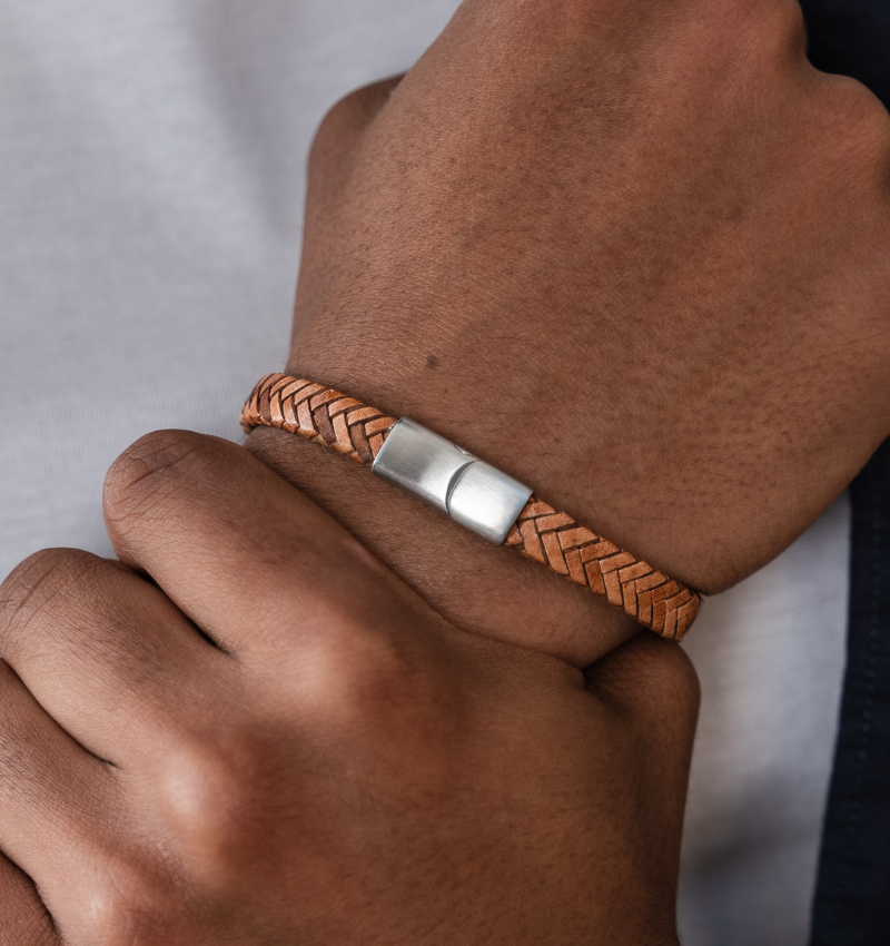 Braided men's bracelet made of genuine leather. Personalize this sturdy piece with a custom engraving—a meaningful gift for any occasion.