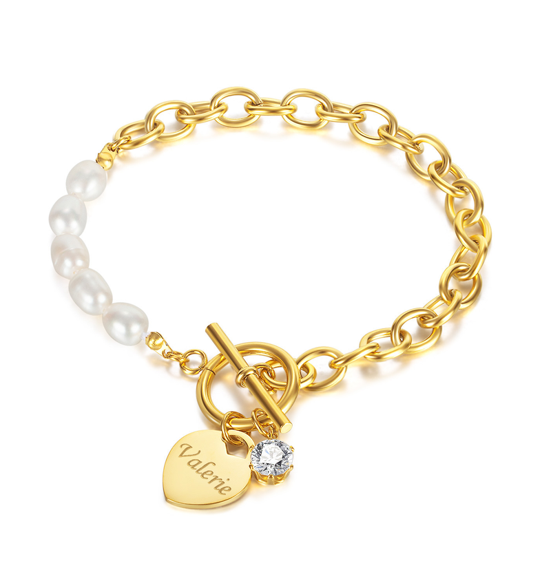 Chain Bracelet with Pearls | Engravable | Stainless Steel - Zilver