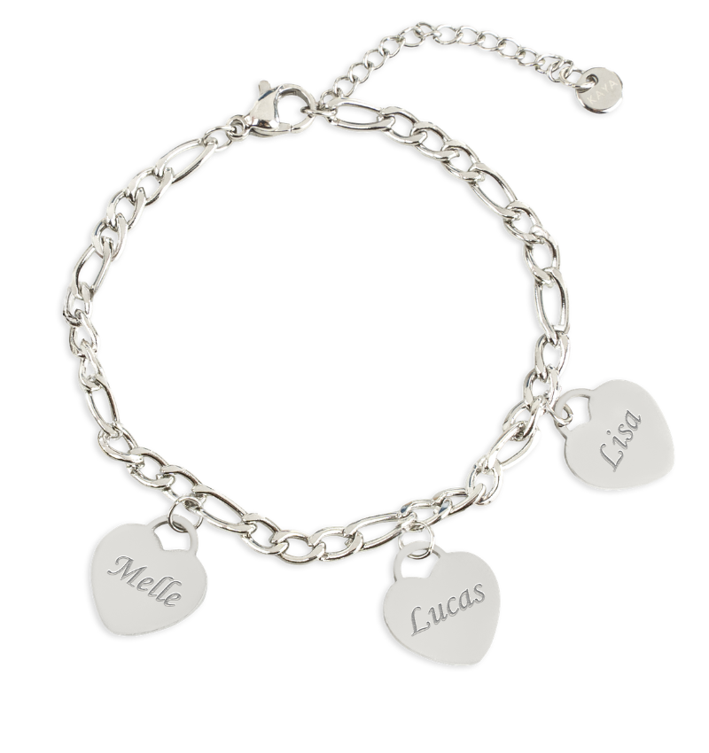 Bracelet with Names | 3 Hearts | Stainless Steel - Silver