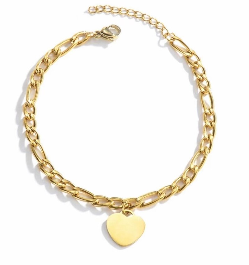 A personal touch: bracelet with a heart-shaped charm that can be engraved.