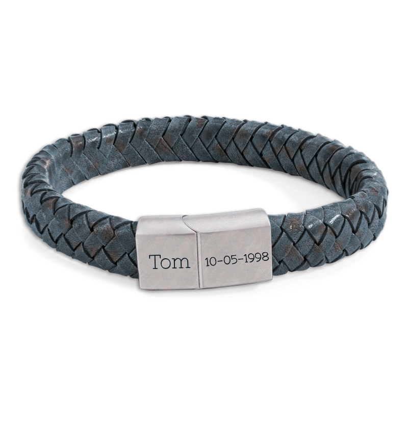 Robust men's bracelet carefully braided from genuine leather. Have a name, date, or initials engraved on the clasp for a meaningful gift!