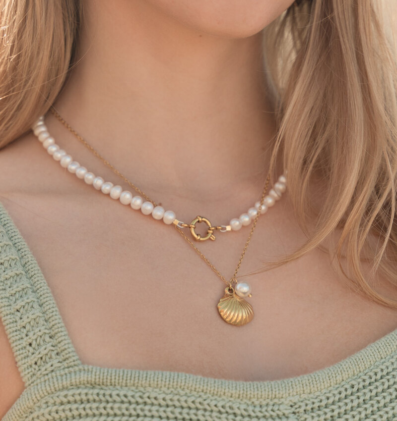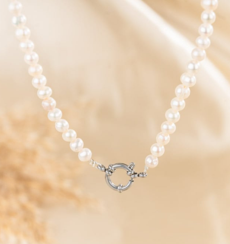 Pearl Necklace with Large Clasp | Stainless Steel - Zilver