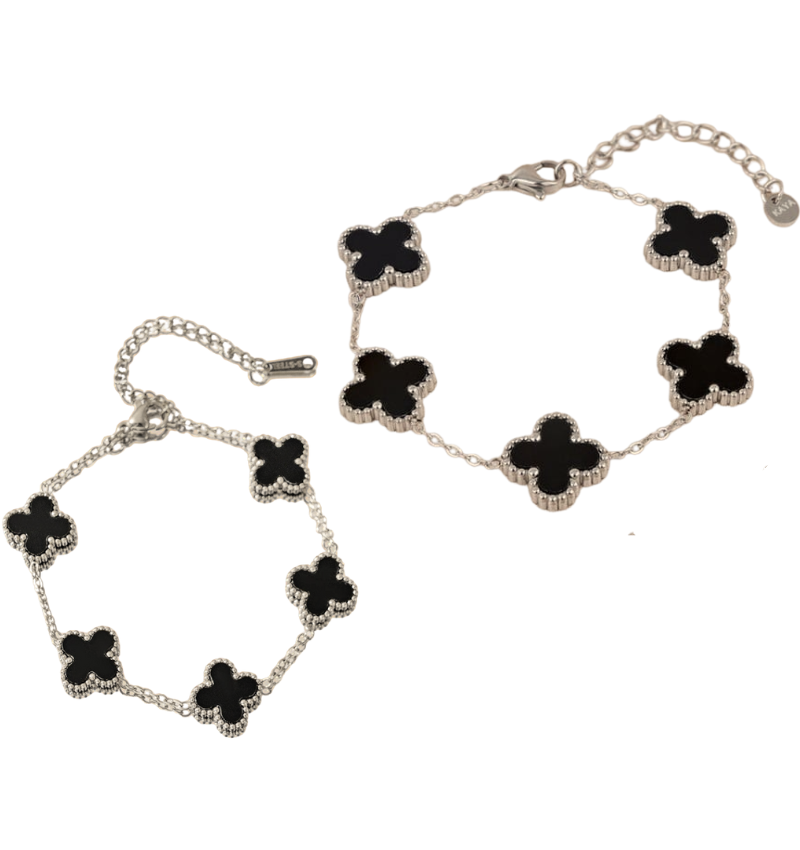 Mother and Daughter Clover Bracelets Set Black | Stainless Steel - Zilver