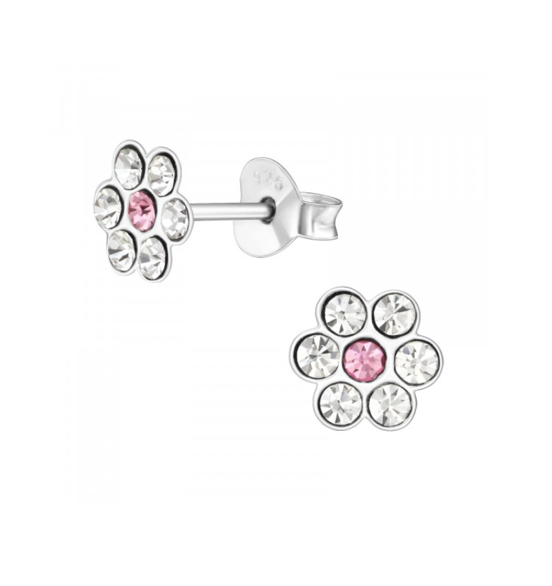 Silver Children's Earrings 'Flower' with Crystal - 925 Sterling Silver