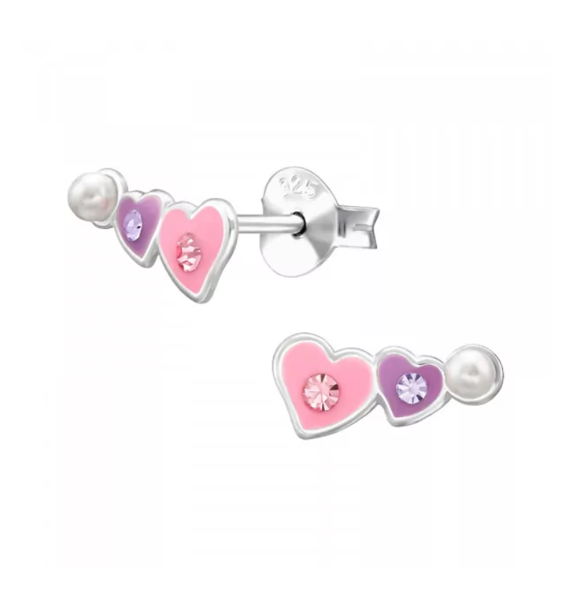 Children's Earrings Crystal Heart with Pearl - Zilver