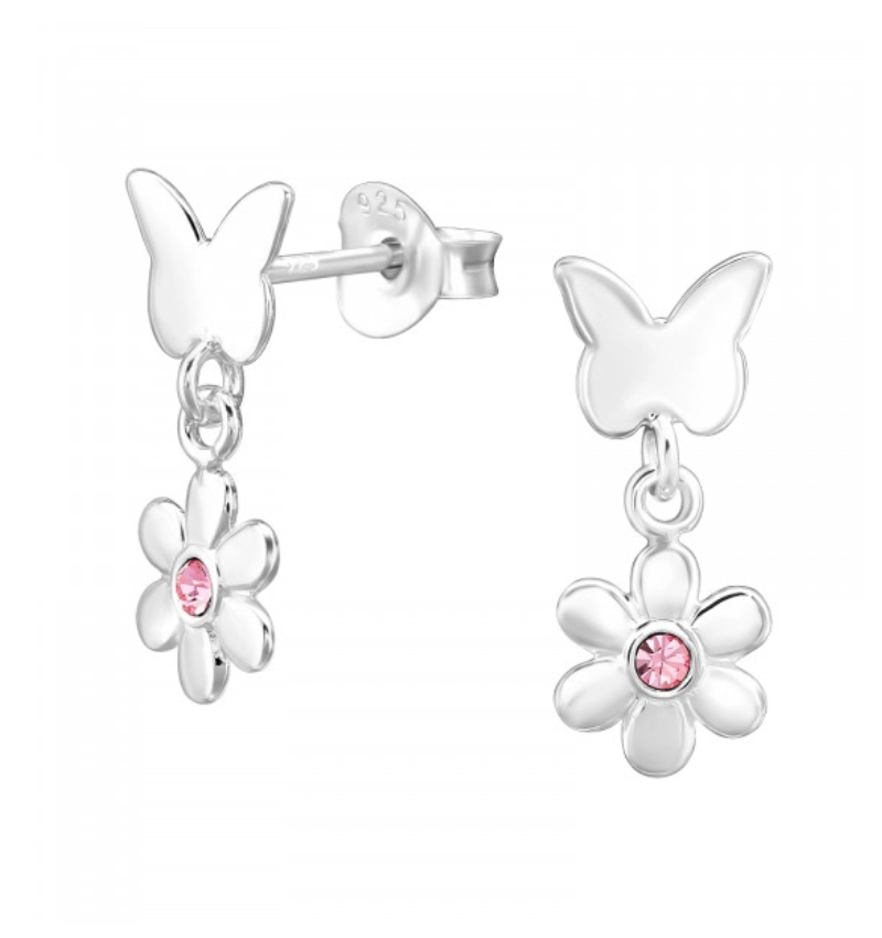 Silver Children's Earrings 'Flower & Butterfly' - Copy - Zilver