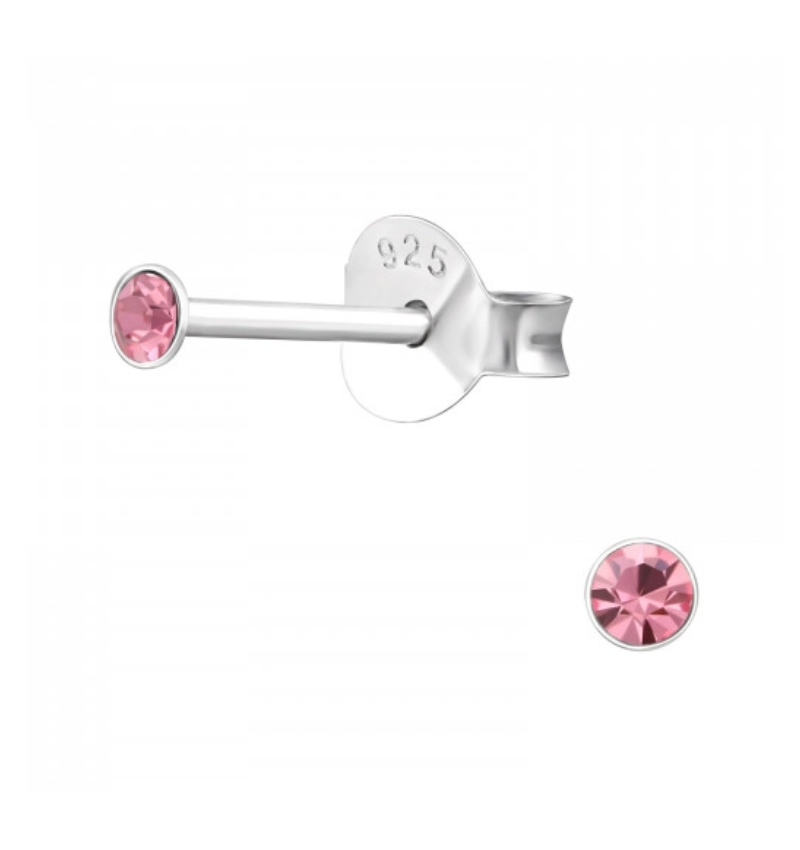 Children's Earrings Mini Pink Crystal - 925 Sterling Silver