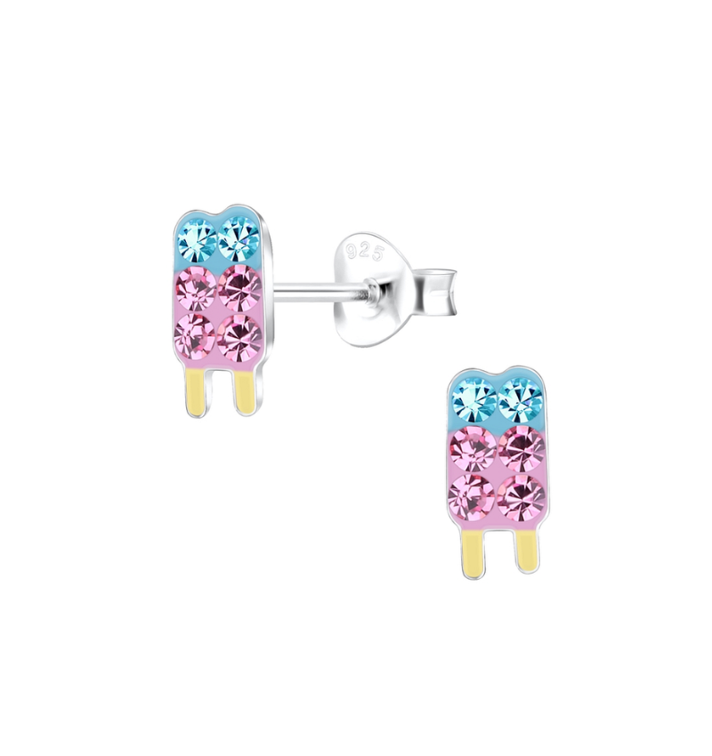 Let your little one shine with these adorable pink ice cream earrings, adorned with sparkling crystals