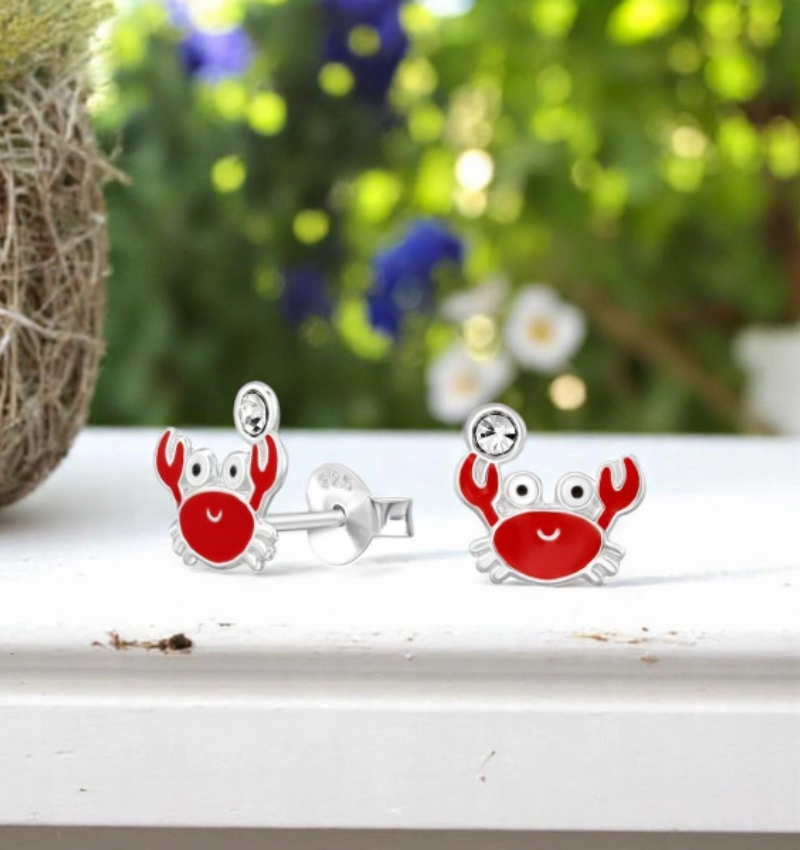 Silver Children's Earrings Salamander with crystals - Copy - Zilver