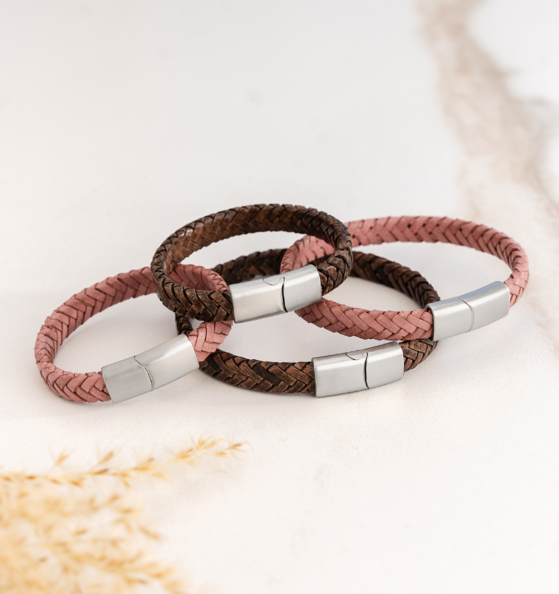 Four bracelets, one band. A rugged set of carefully braided leather, as a powerful symbol of your connection.