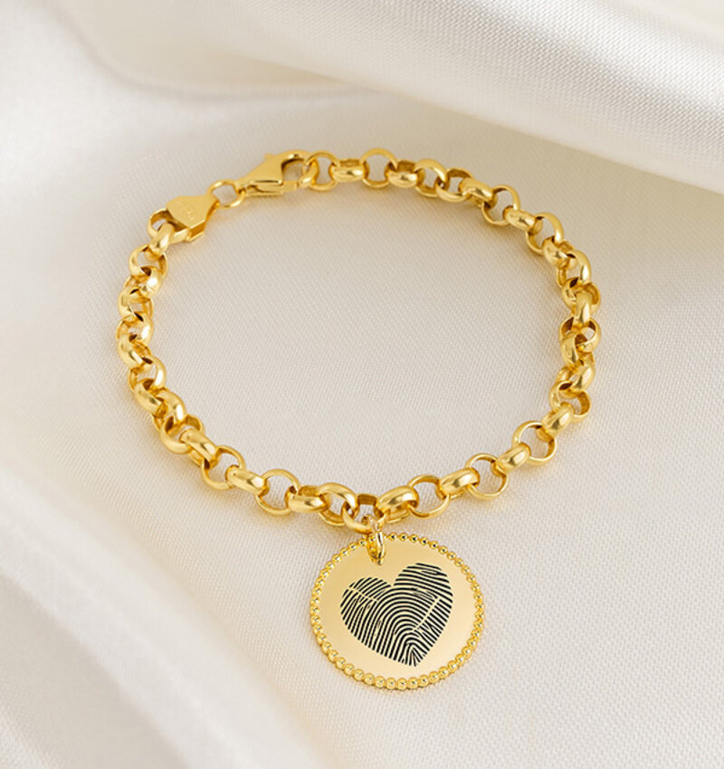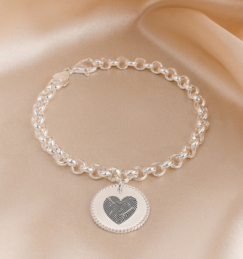 In addition to its luxurious appearance, this elegant bracelet also has a very special meaning. Thanks to the fingerprints, you always carry your loved ones with you.