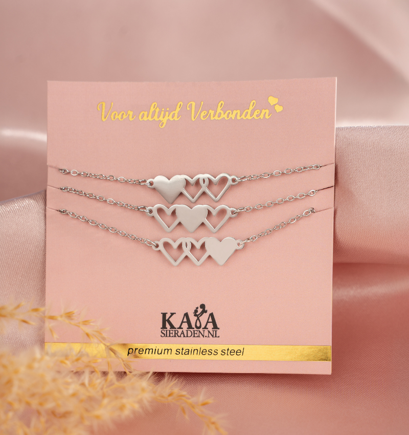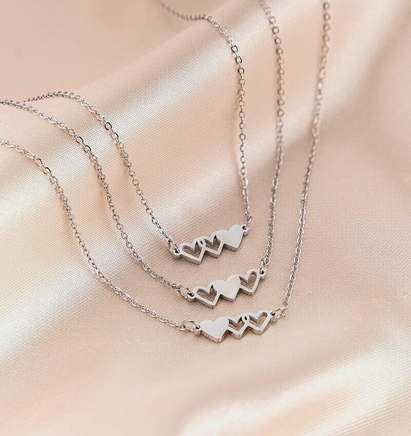 This set of silver heart necklaces symbolizes the bond with the people who are important to you.