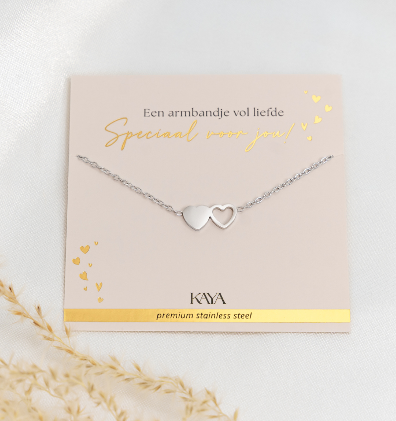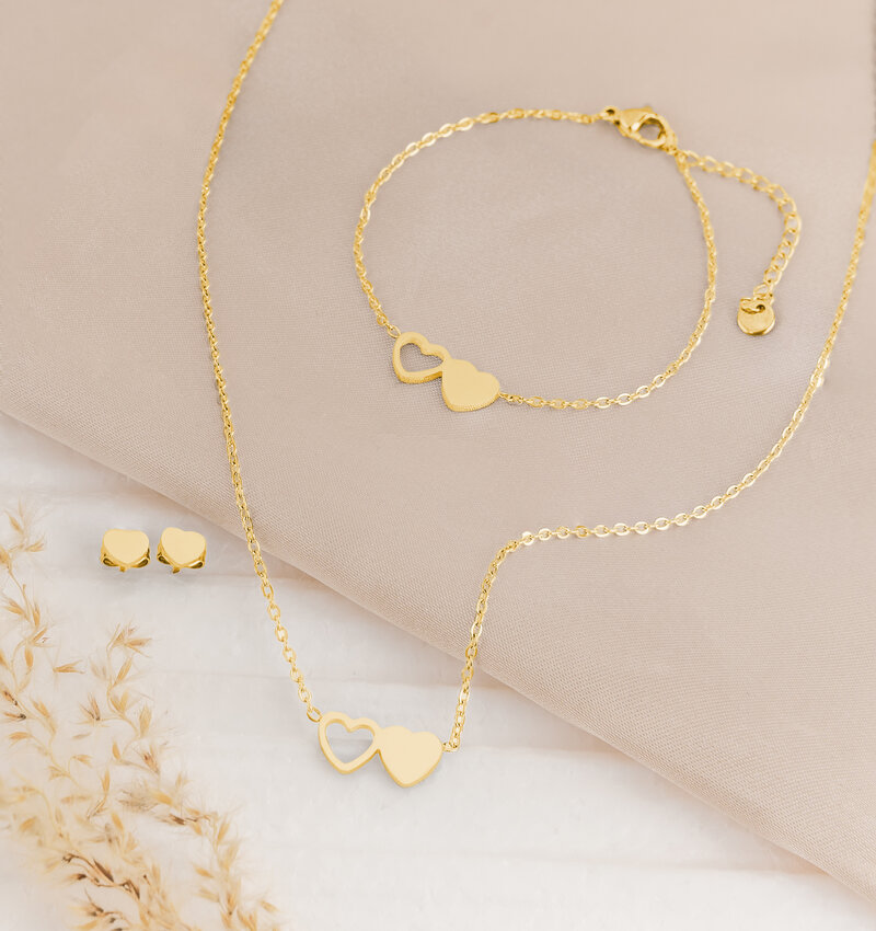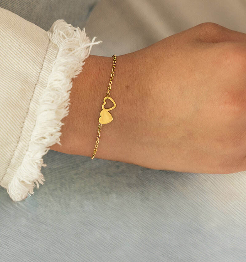 Bracelet Ladies Two Hearts | Stainless Steel - Gold