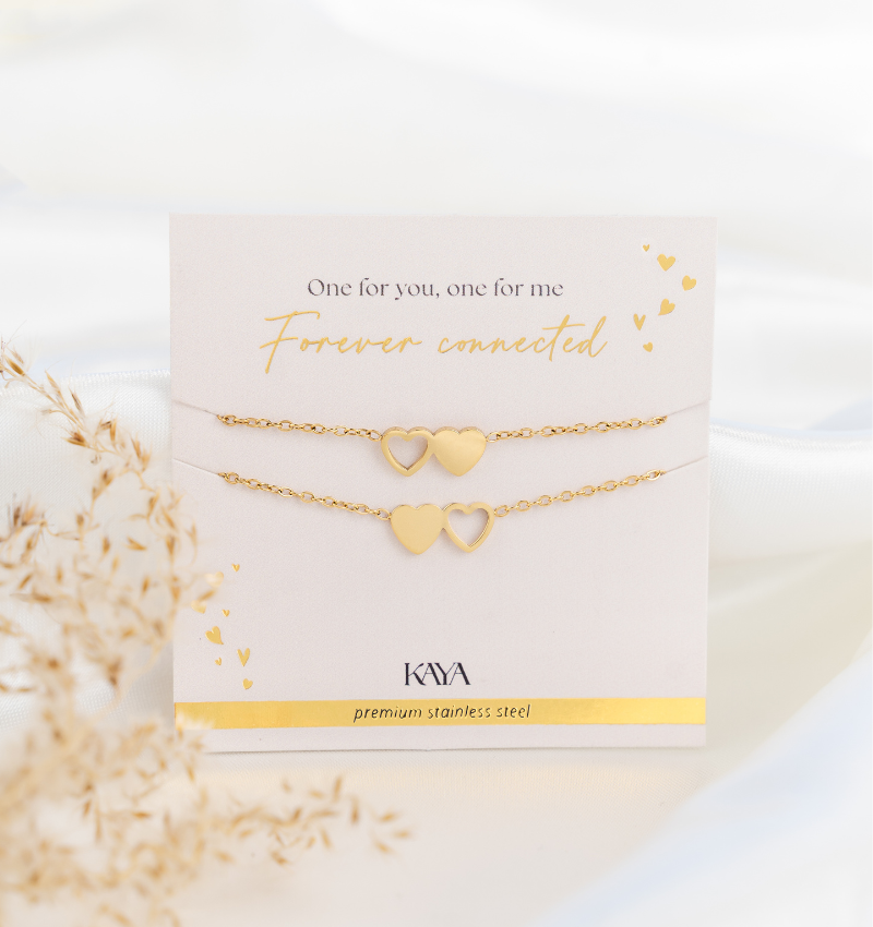 Friendship bracelets set two hearts | Stainless Steel - Gold