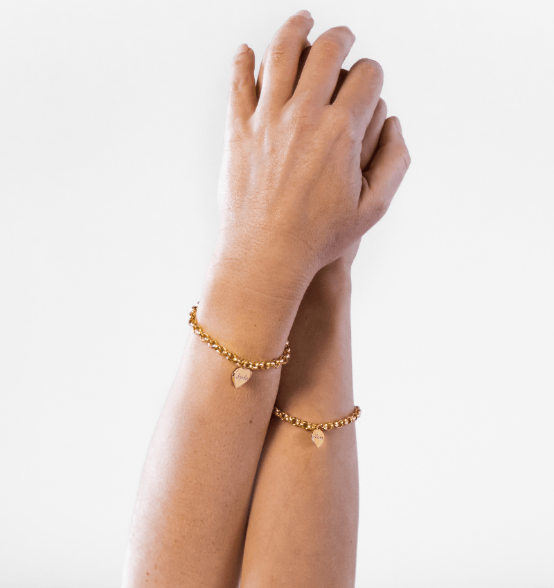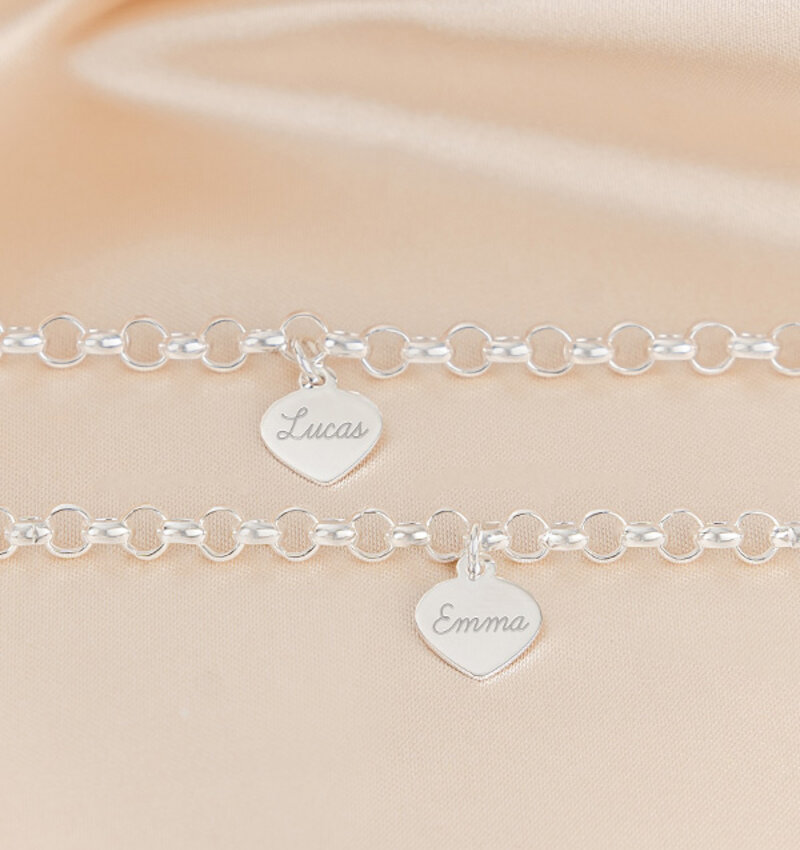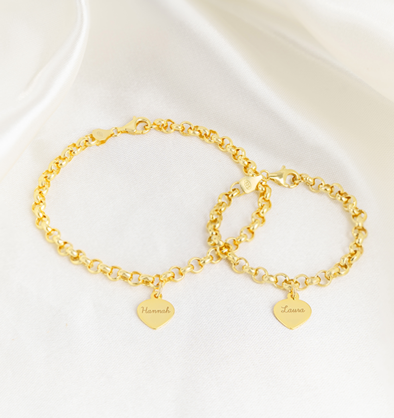 Beautiful bracelets for mother and daughter. And how sweet, the links for the girl just slightly smaller than that of mother. On either hangs a graveerbedel you can get customized as desired. Advantageous to expand with an additional bracelet.