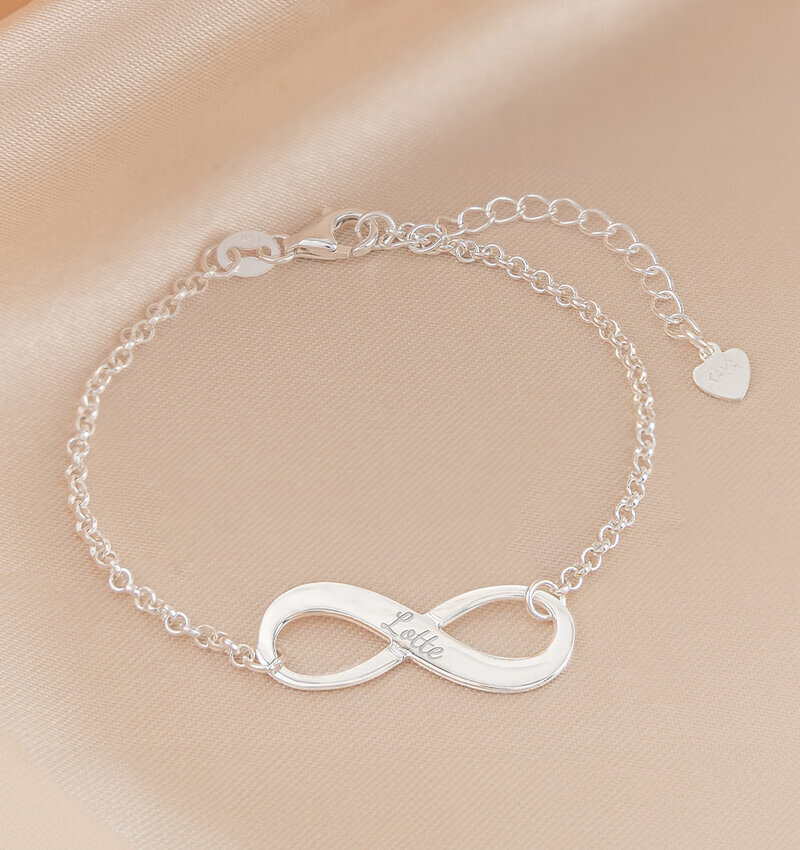 Infinity bracelet made of real silver, engrave her name or a special word!