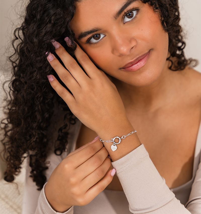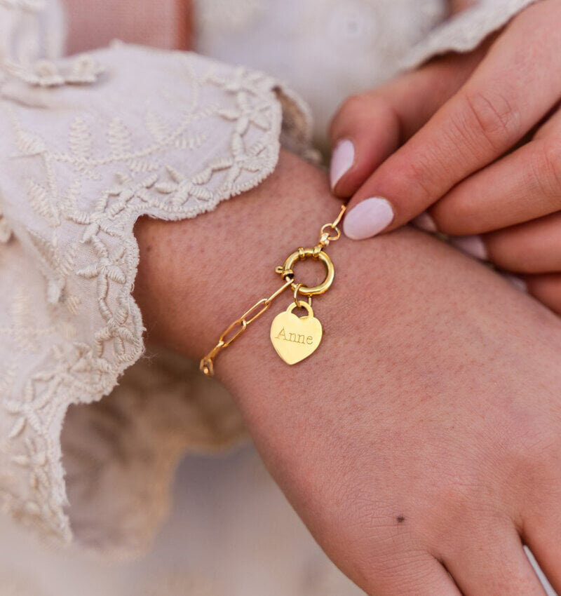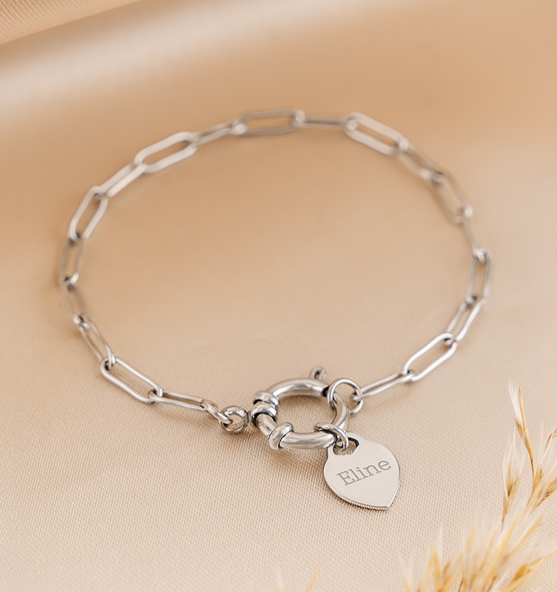 A classic link bracelet with a round clasp and a lovingly engraved heart – a beautiful gift for any occasion.