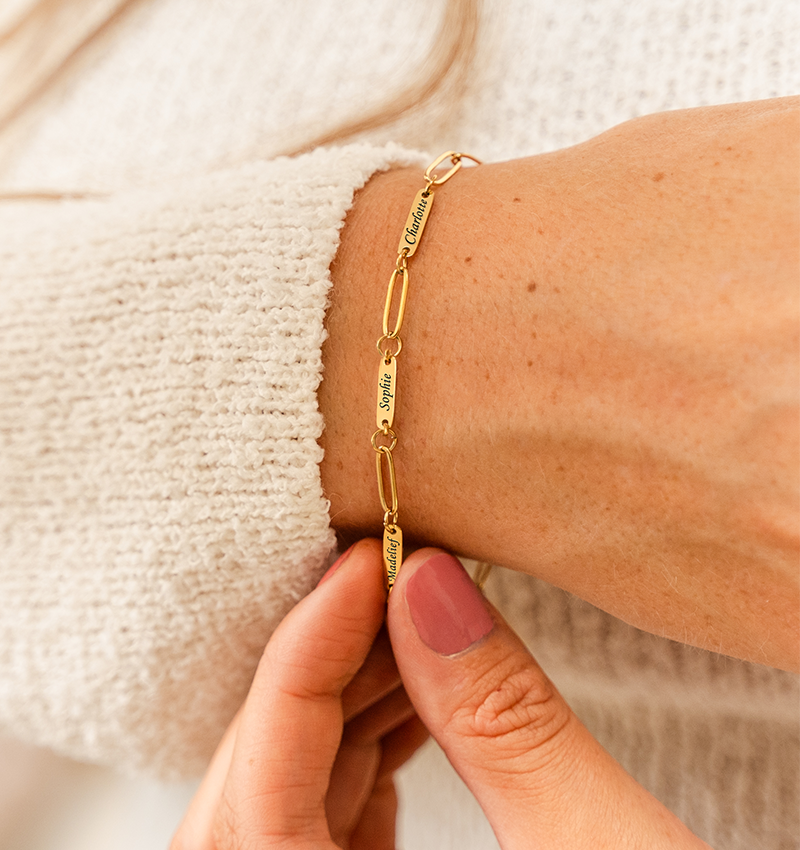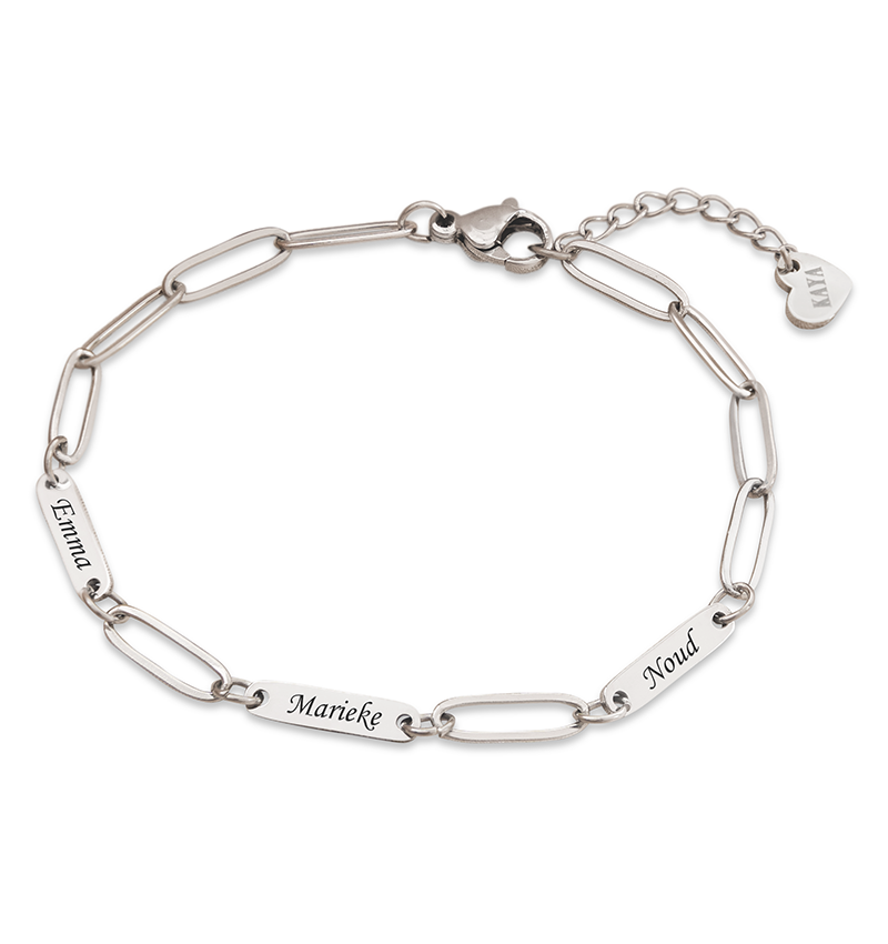 Personalized 3 Names Bracelet ‘Paperclip’ - Silver