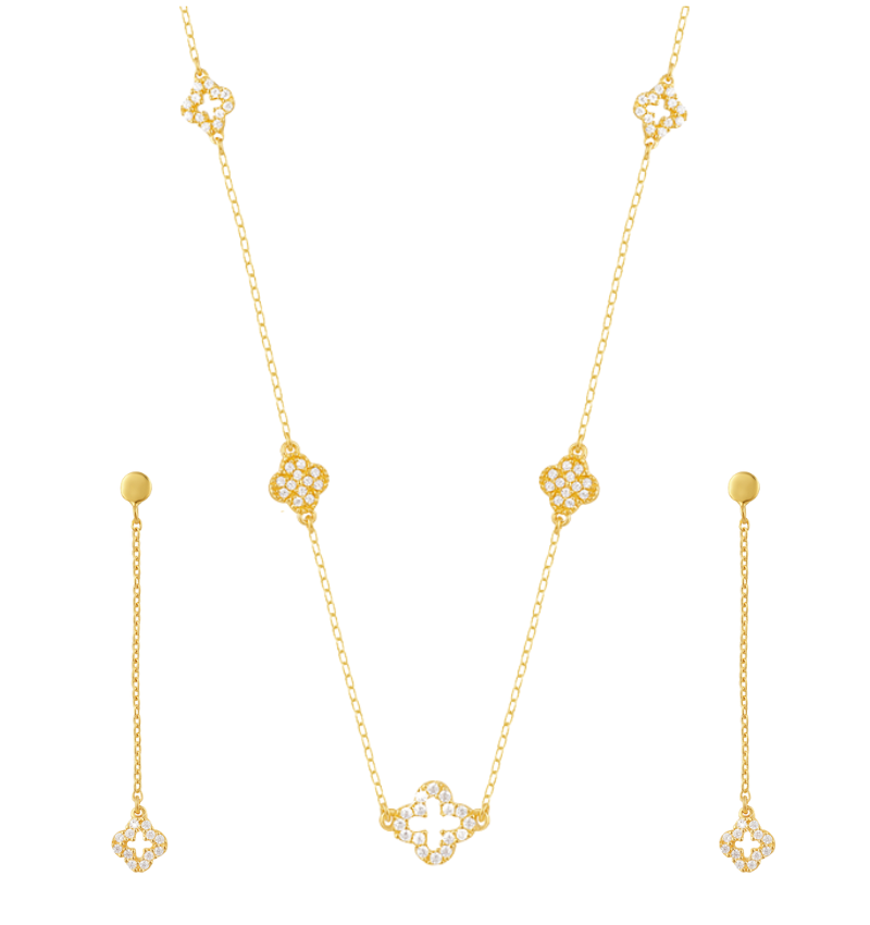 Lucky & luxurious. The luxurious clover jewelry set with zirconia completes any look.