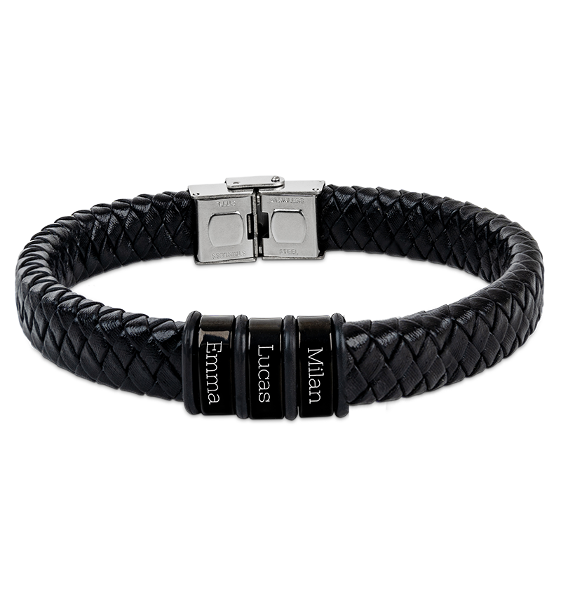 Men's Bracelet Leather 'Rock My World' Black | Create Your Own - Zwart