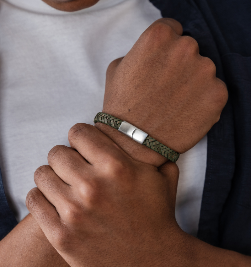 Robust men's bracelet made of carefully braided leather. A timeless piece of jewelry that exudes strength and character. Perfect as a special gift for yourself, your father, or your partner.