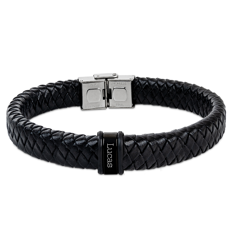 Boys bracelet with name Leather ´Rock My World´ | Black - Zwart