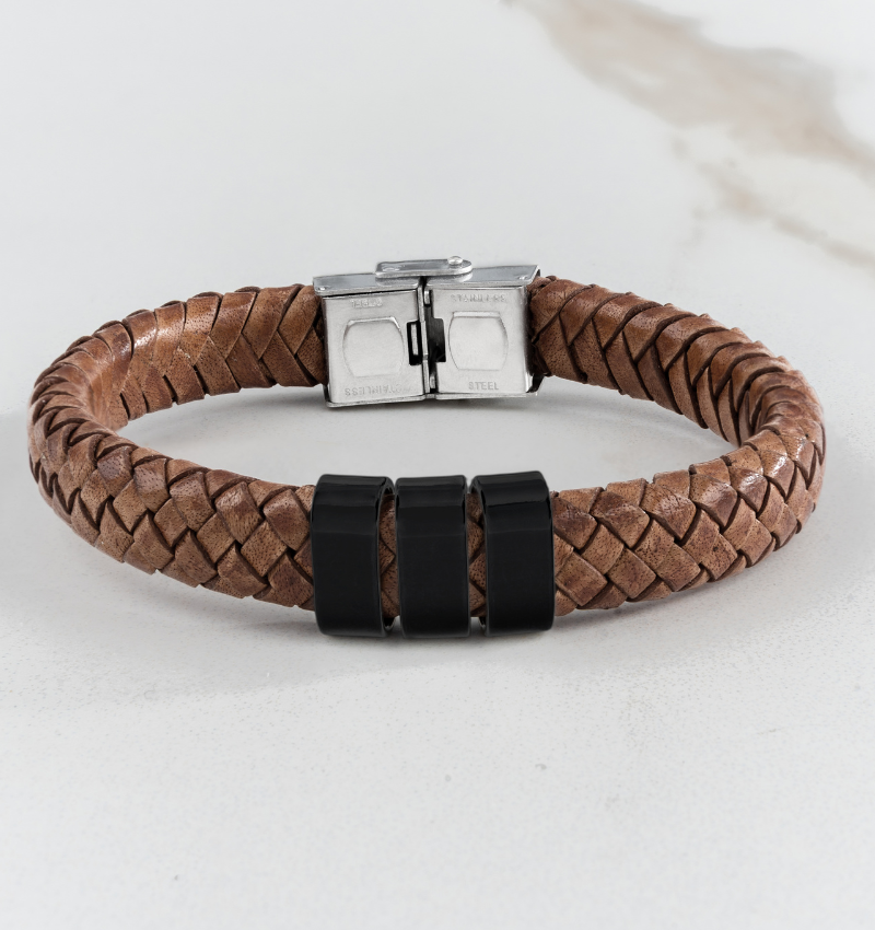 Whether you're wearing a casual outfit or getting ready for a special occasion, the Rock My World black boys bracelet with name charm adds a cool and personal touch to your look.