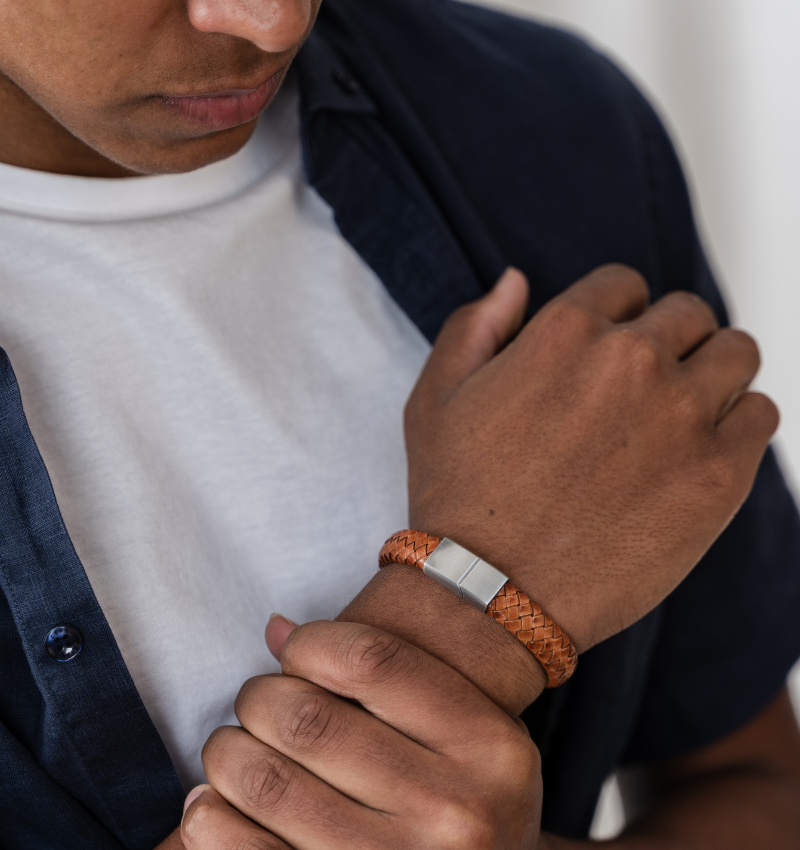 Robust men's bracelet made of carefully braided brown leather. A timeless piece of jewelry that exudes strength and character. Perfect as a special gift for yourself, your father, or your partner.