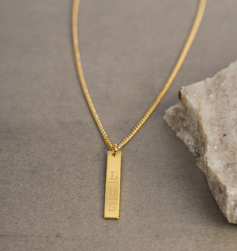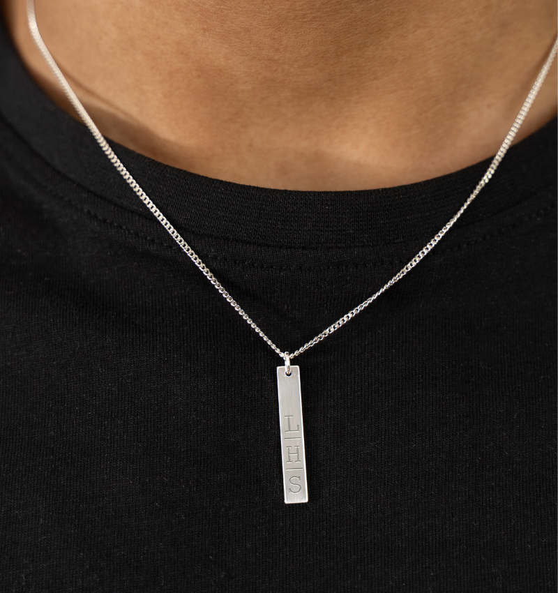 The men's bar necklace with three initials is the perfect gift with a personal meaning.