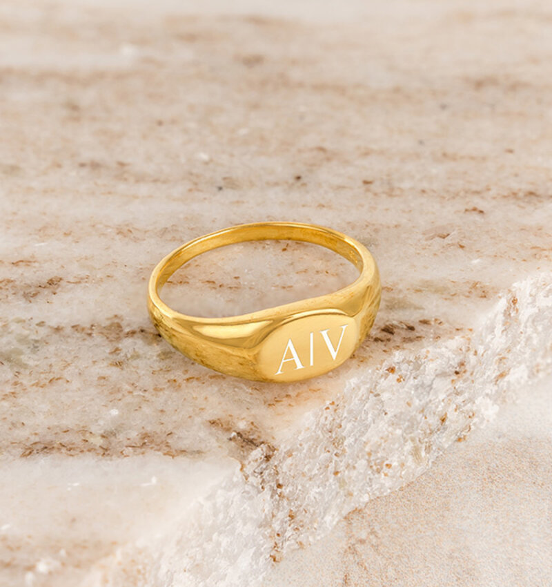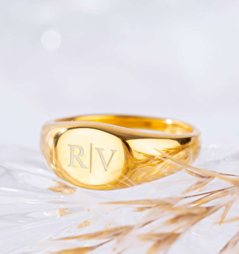 Personalized Signet Ring Men with Initials | Gold Plated - Goud