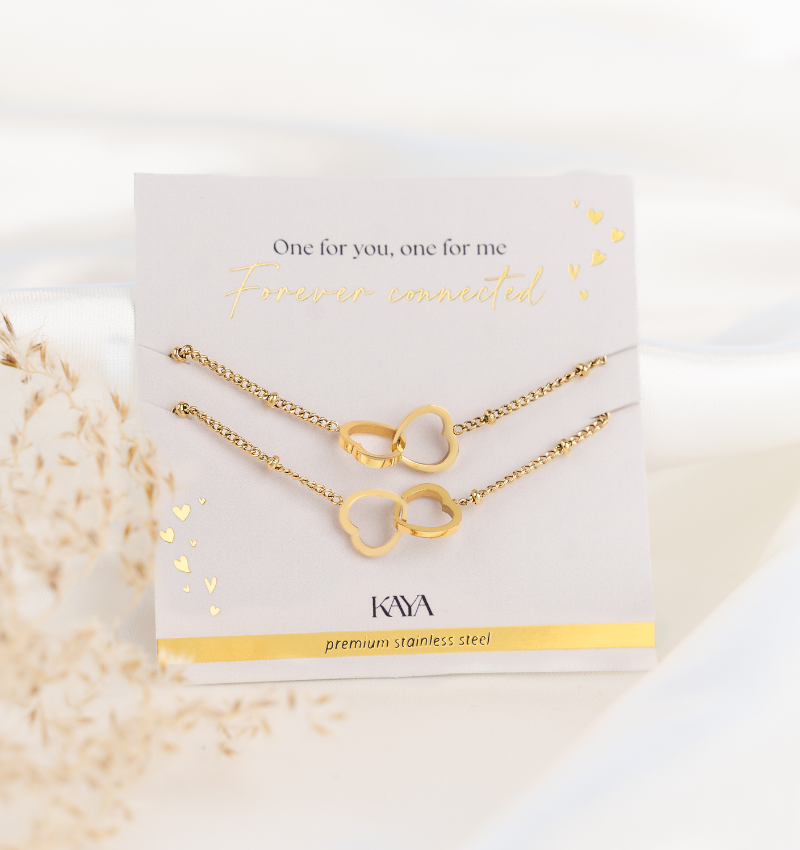 Sisters Bracelet Set Connected Heart | Stainless steel - Gold